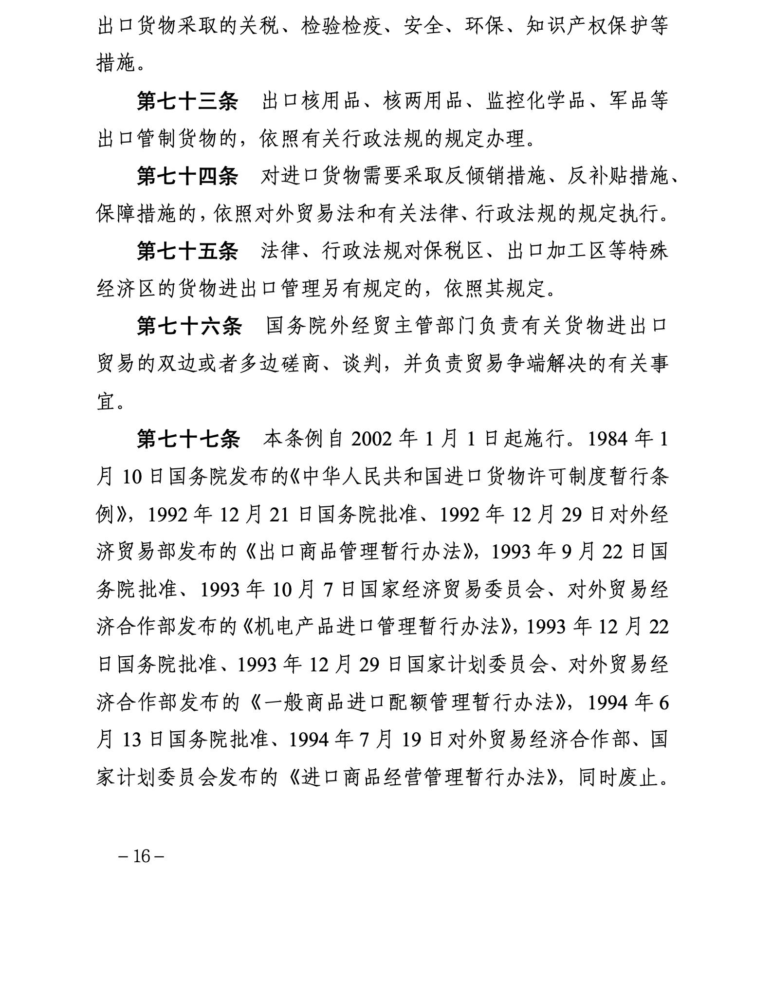中华人民共和国货物进出口管理条例