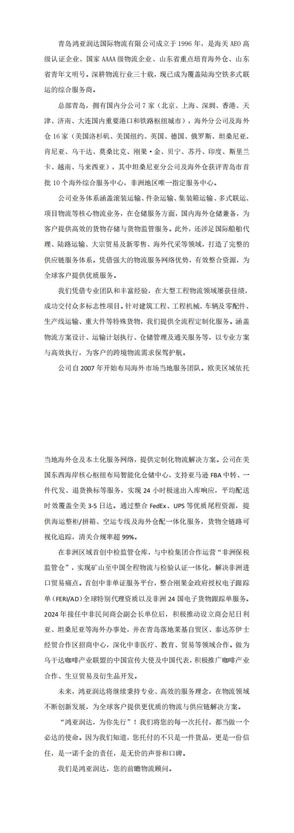 青岛鸿亚润达国际物流有限公司