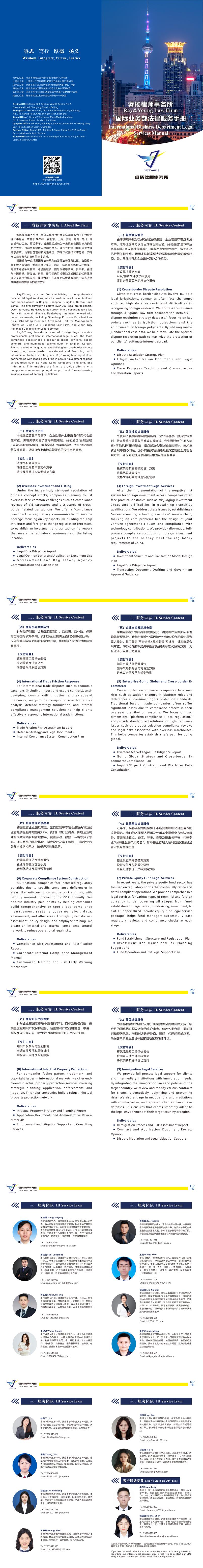 睿扬拥有一支精通国际法律规则的涉外法律服务队伍,由经验丰富的跨法域律师、专家学者及英语、韩语、法语等多语种人才组成专注于跨境争议解决、跨境投融资、国际贸易等领域。多年来,睿扬与中国香港、新加坡、泰国、印尼、澳大利亚等热门投资地区或国家的优秀律所建立了紧密合作关系,能够为客户在不同司法管辖区提供一站式法律支持和具有前瞻性的解决方案。